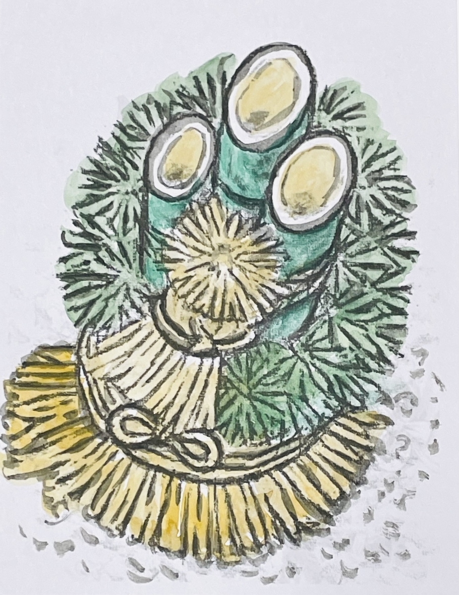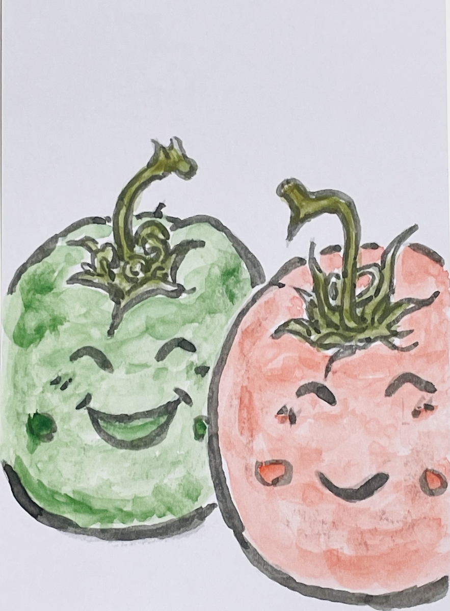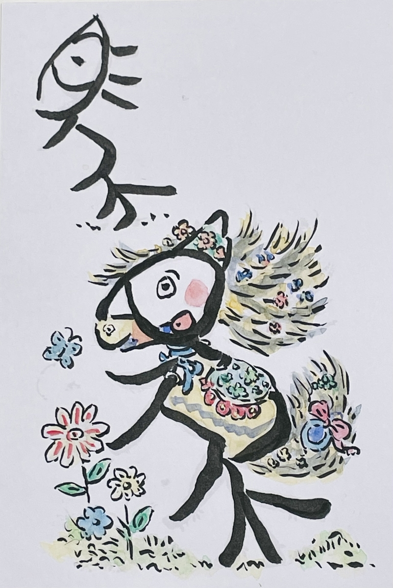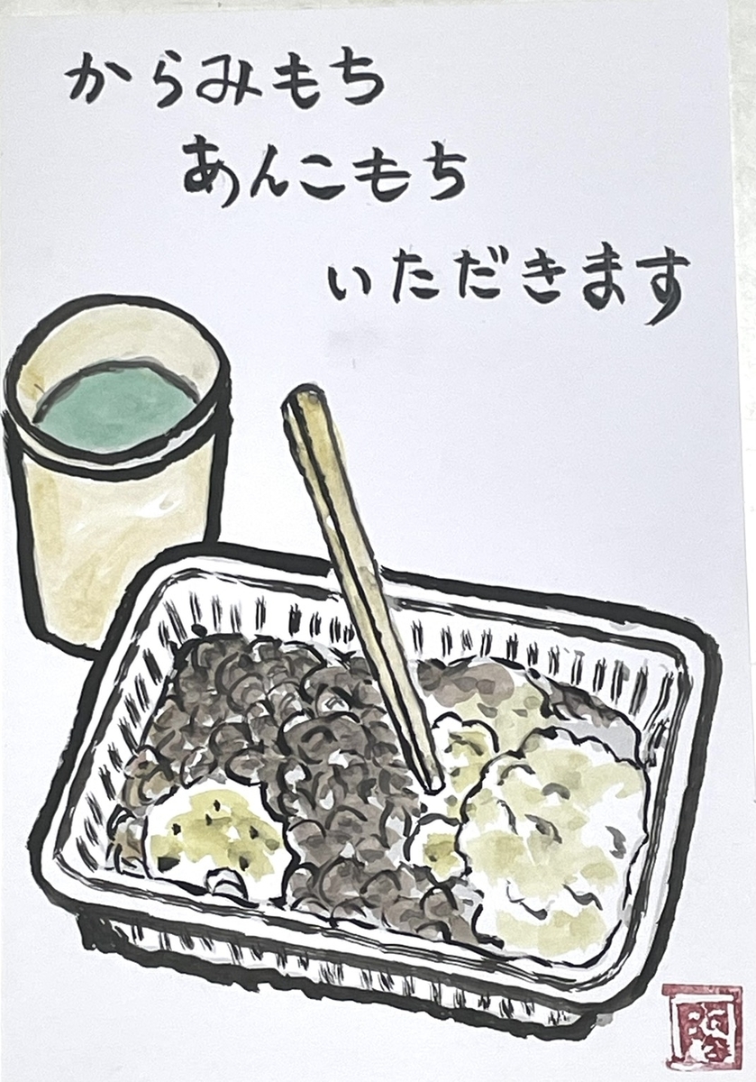 • 文字の工夫:「金」の文字がやや硬く見えるため、筆文字風に柔らかく描くと絵手紙らしさが増します。